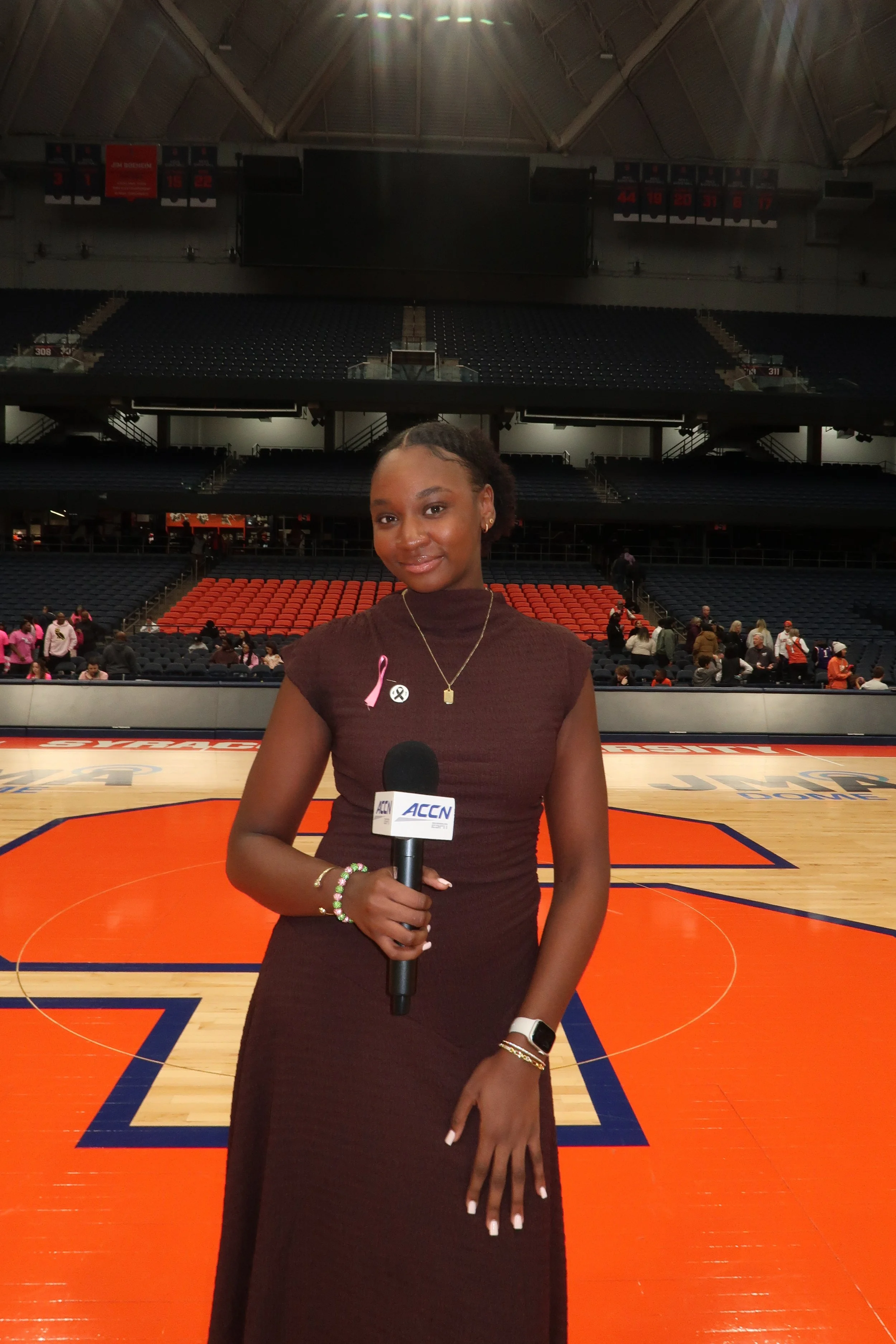 At Newhouse, I’ve had the opportunity to commentate on my former team, bringing both personal experience and analytical insight to my coverage. I’ve interviewed former student-athletes, using my own experiences to ask thoughtful questions and create stories that feel honest and relatable to audiences to promote engagement with all sports at Syracuse.